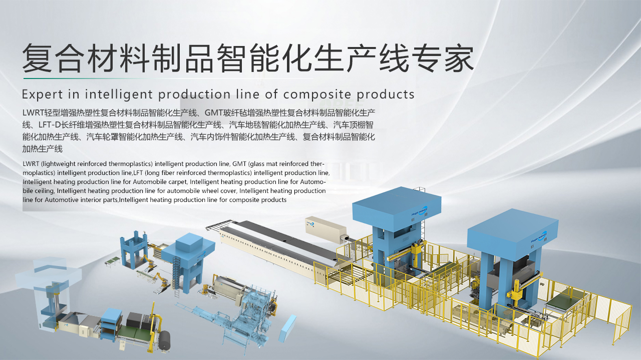 The following fields are covered: Far Infrared Oven, Heated Air Circulation Oven,Industrial oven,Curing furnace,Multilayer oven, Touch type heater,Multi-layer touch type heater,PET composite products intelligent production line,LWRT (lightweight reinforced thermoplastics) intelligent production line, GMT (glass mat reinforced thermoplastics) intelligent production line,LFT (long fiber reinforced thermoplastics) intelligent production line, Intelligent heating production line for Automobile carpet, Intelligent heating production line for Automobile ceiling, Intelligent heating production line for automobile wheel cover, Intelligent heating production line for Automotive interior parts,New energy vehicle battery cover and lower shell intelligent production line, SMC composite products intelligent production line,HP-RTM /HP-CRTM composite products intelligent production line,Intelligent heating production line for composite products, Ultrasonic plastic welding machine, Hot plate welding machine,Teflon strip composite machine, Steel strip composite machine, Felt sheet composite machine, Heating equipment supporting automation equipment, Such as truss loading manipulator and frame loading manipulator, Automatic up and down feeding machine, Spreading Machine, Automatic loading and unloading by robot, Gripper, Acupuncture group, Lorry, Air motor return device, Elevation structure etc.